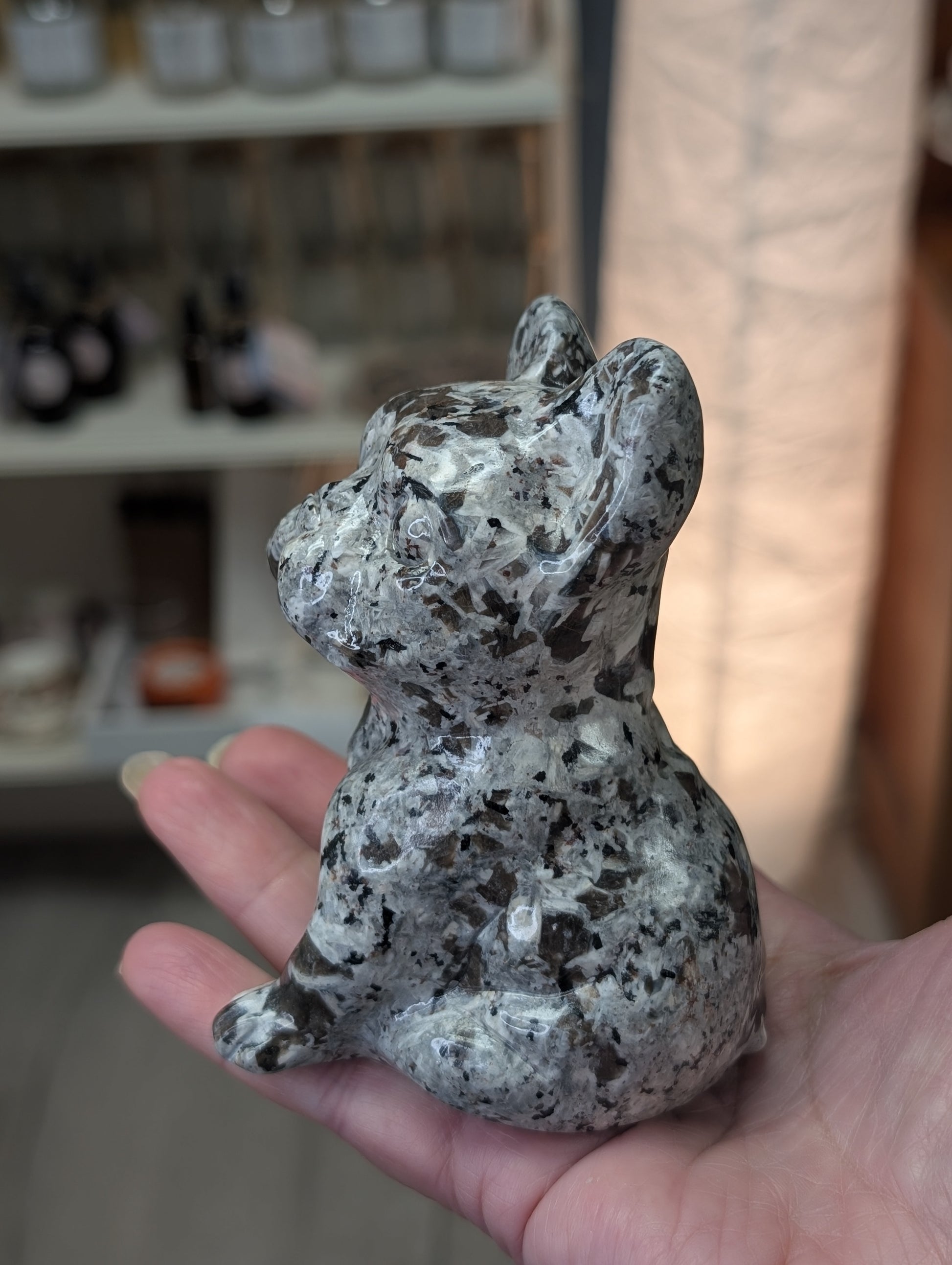 Sarah keeps one of these crystal dogs near her reading table as both a guardian energy and a reminder to find light in the darkness. It's a playful yet powerful piece for those who love crystals with personality and presence.
