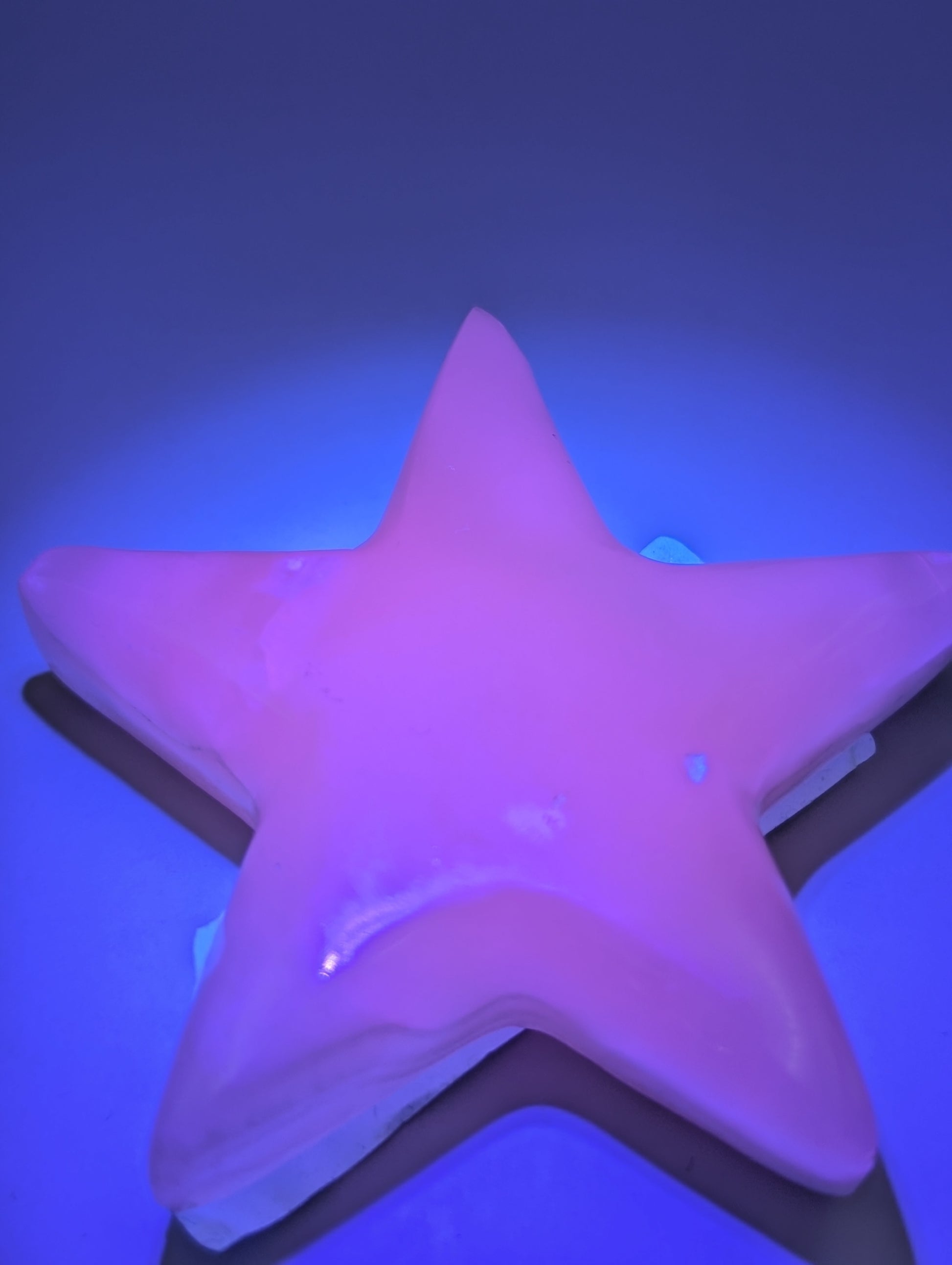 Cleaning: To maintain the natural beauty of your Mangano Calcite Star, gently clean with a soft, dry cloth. Avoid using water or harsh chemicals, as Mangano Calcite is sensitive to moisture.