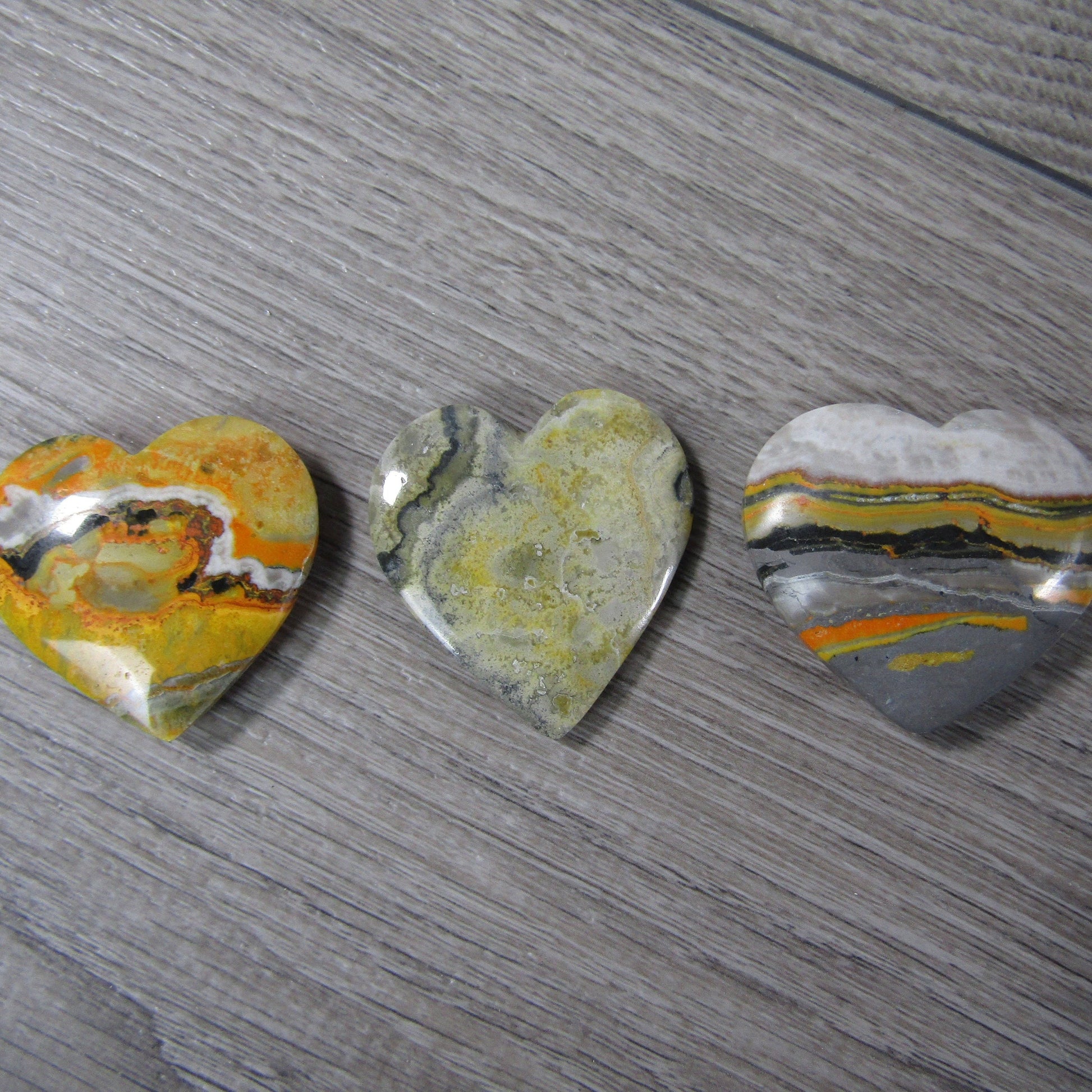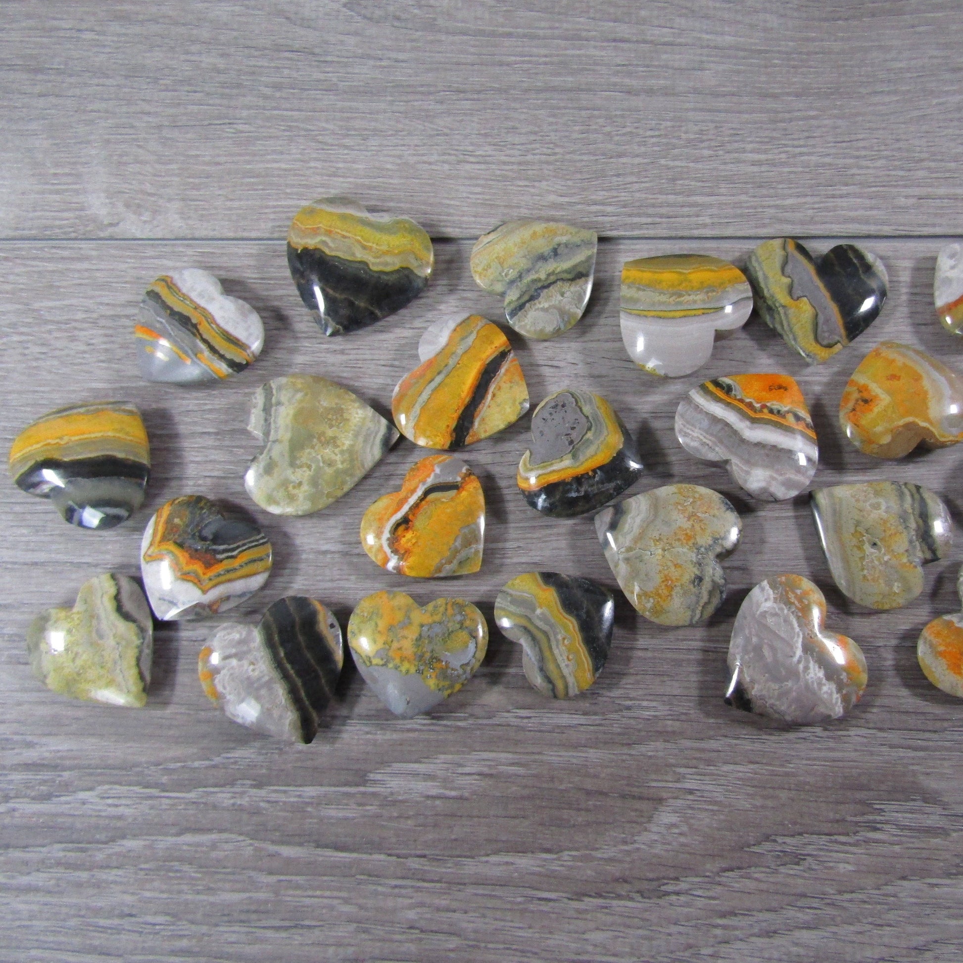 Add vibrant energy to your collection with these hand-carved Bumble Bee Jasper hearts. Known for their stunning yellow, black, and orange banded patterns, each piece is a fiery fusion of color and power. Bumble Bee Jasper is a rare and visually striking stone, formed from a mix of volcanic matter, sulfur, and arsenic minerals—making it as energetically intense as it is beautiful.