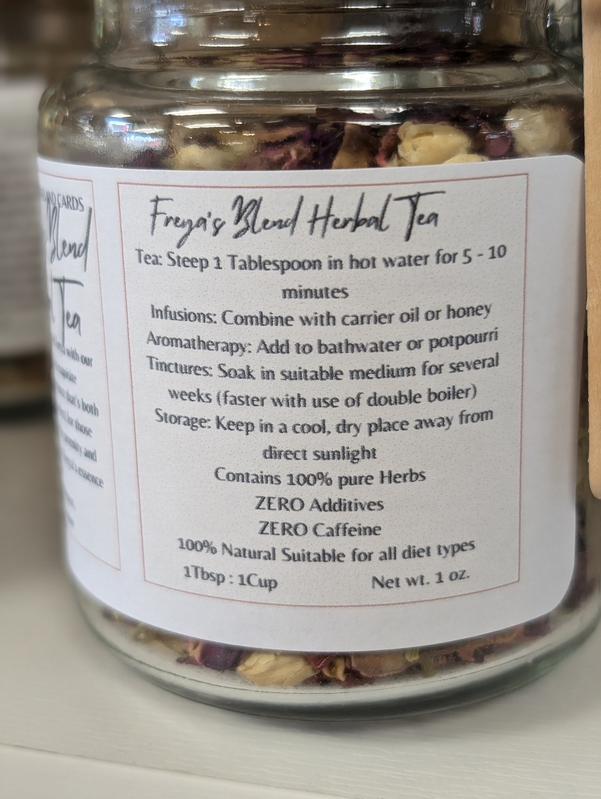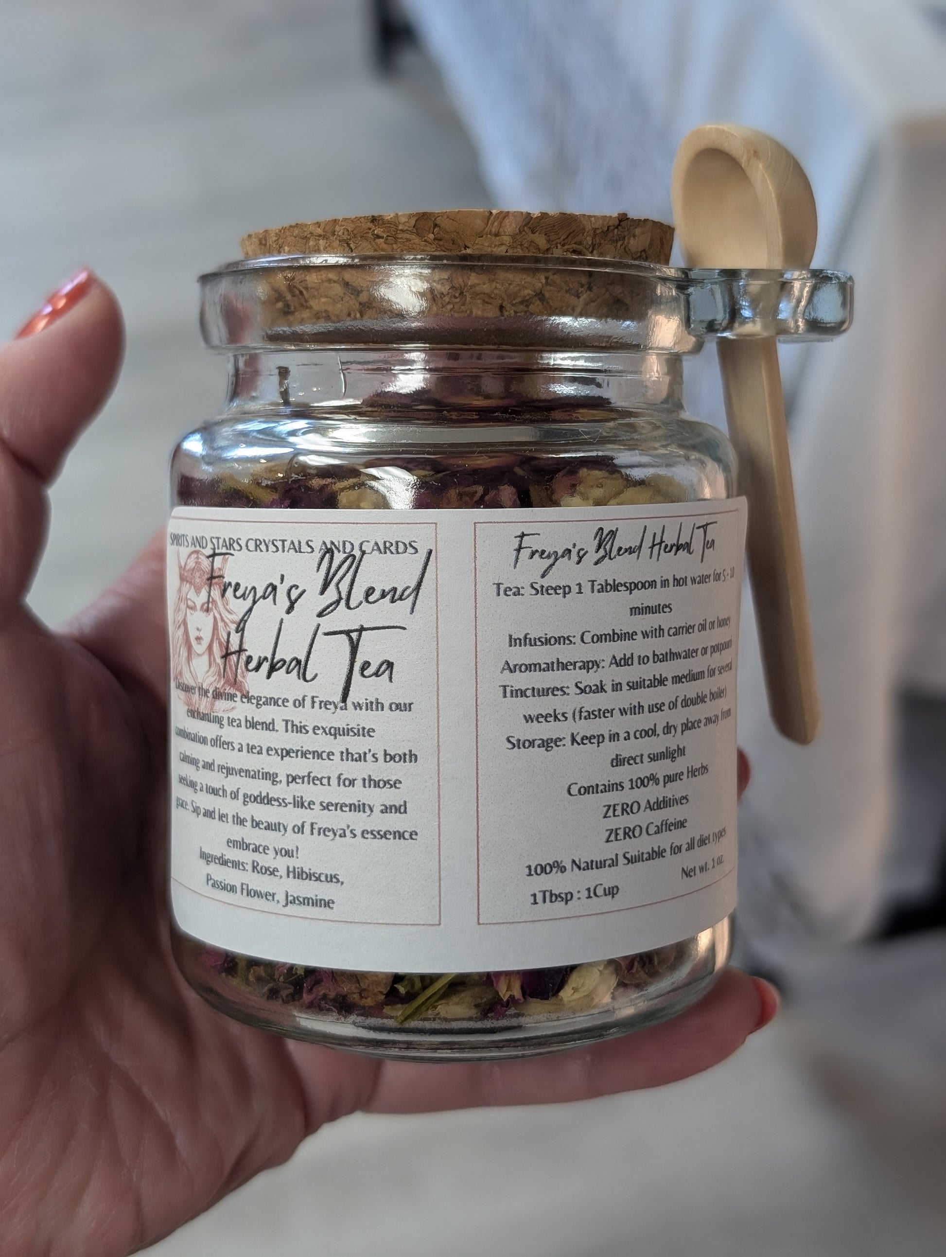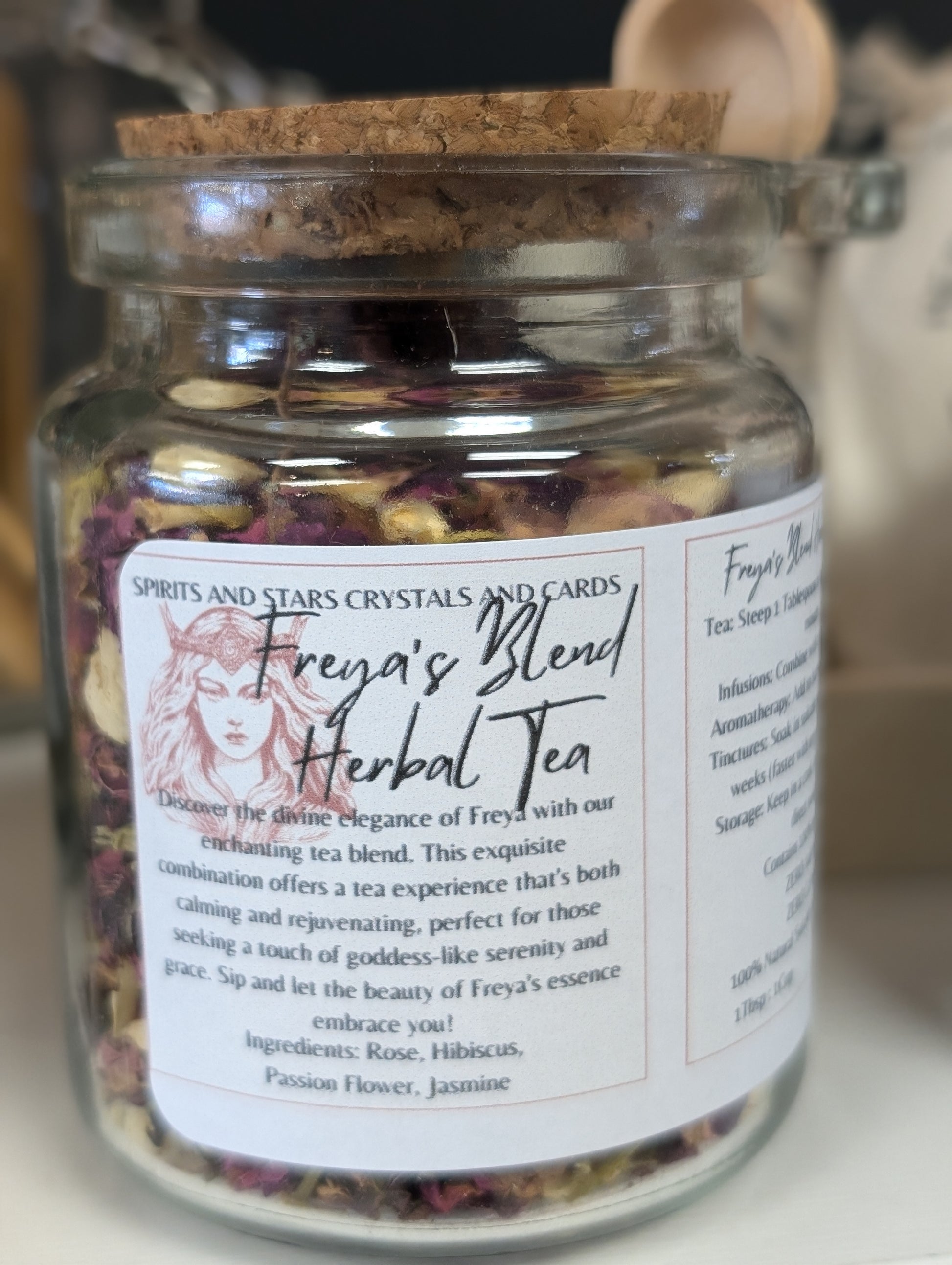 Discover the divine elegance of Freya, the Norse goddess of love, beauty, and magic, with this enchanting herbal tea blend. Crafted to evoke her radiant energy, this floral infusion brings a perfect balance of serenity and heart-opening warmth. Sip slowly and let Freya’s essence embrace your spirit in every calming, rejuvenating cup.