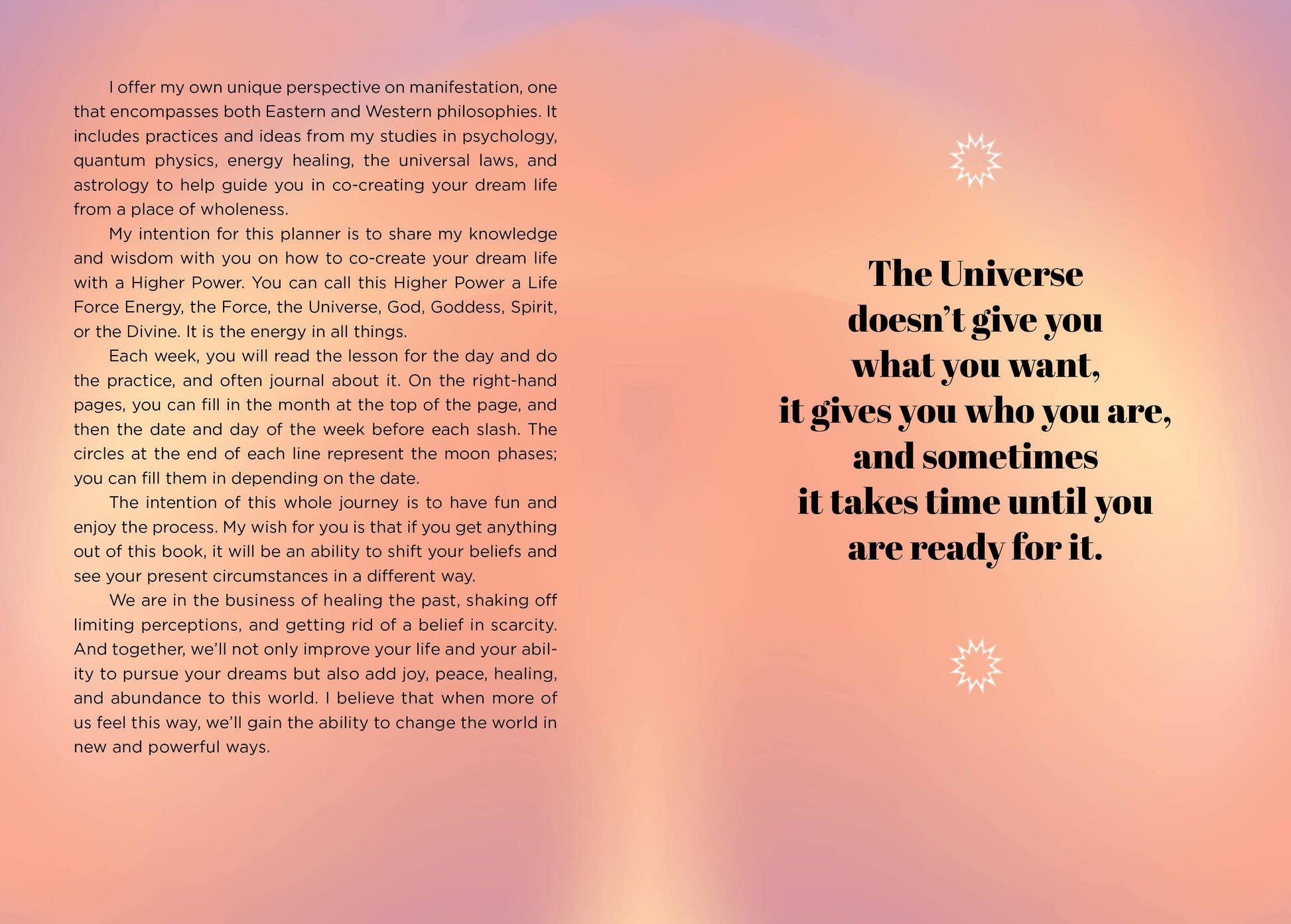 Whether you're setting intentions, journaling your progress, or staying organized, this planner is your essential companion to manifesting your deepest desires and achieving your goals—one day at a time.