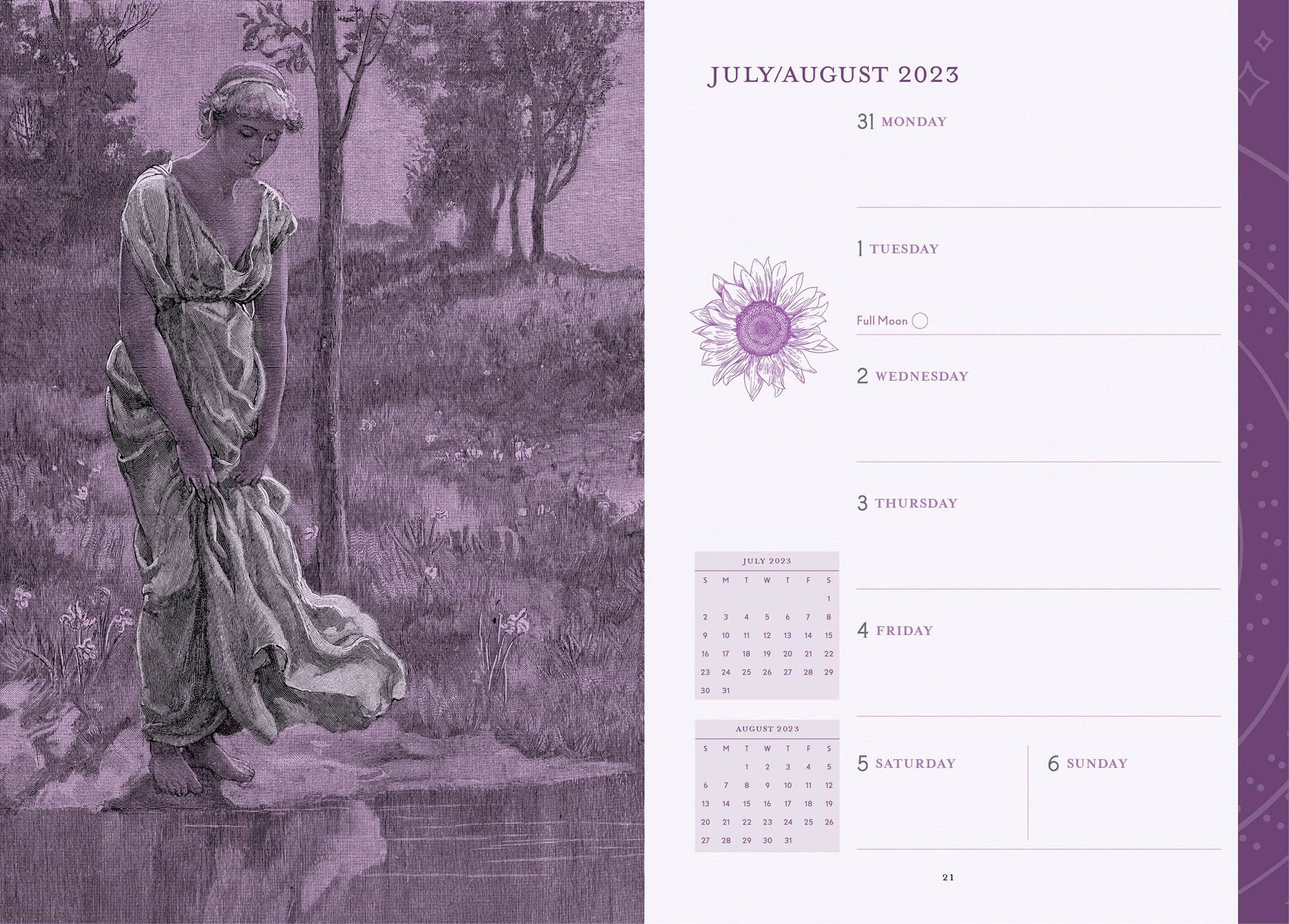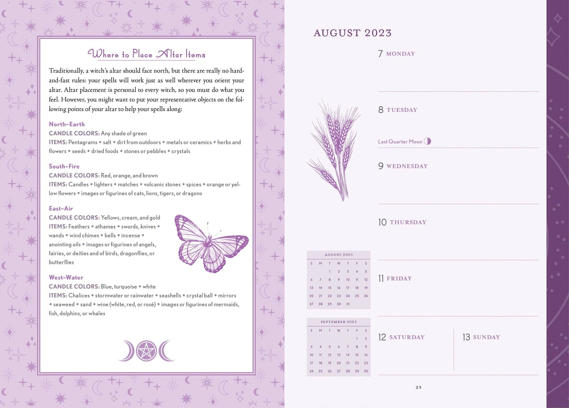 Make the most of your magickal year by chronicling it with this indispensable 2024 planner filled with inspiring Wiccan spells and lore. This 17-month engagement calendar is the perfect place for modern-day witches, Wiccans, and pagans to track everything from daily tasks to key rituals to the sacred holidays and solstices on the Wheel of the Year. It is filled with beautiful illustrations as well as tips on holistic magick, Wiccan lore, and a variety of key spells. The planner lists the all-important moon phases, as well as major and national holidays. This is the perfect witch’s calendar for anyone seeking a Wiccan holiday gift, those who enjoyed the 2023 edition, or users of other writual planners looking for something new. Flexibound book; 6 x 8.5 inches; 192 pages.
