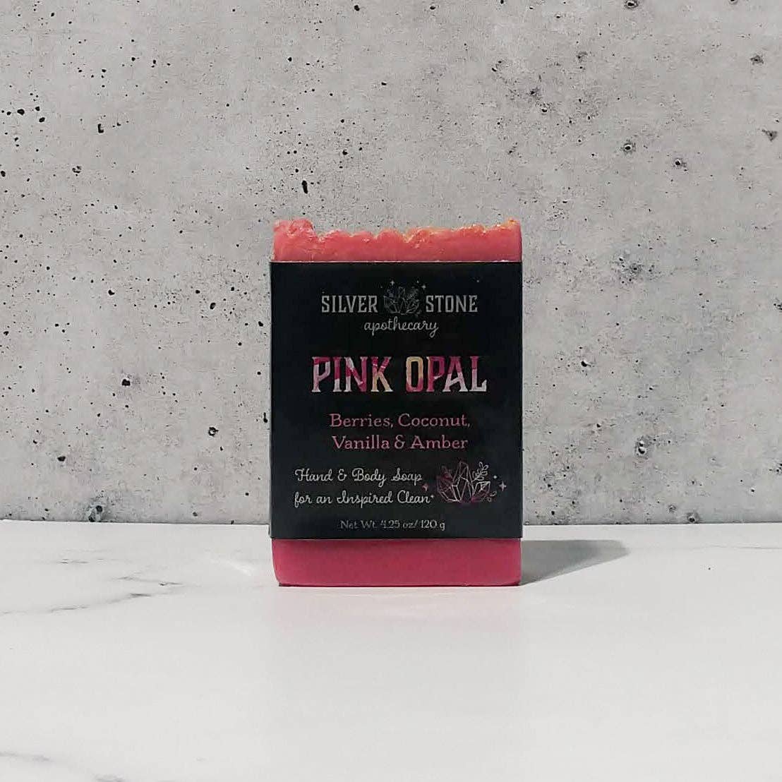 Invoke youthful rejuvenation and bask in tropical bliss with our Pink Opal–inspired handmade soap, expertly crafted in Oregon by Silver Stone Apothecary. This luxurious soap blends the vibrant, uplifting scents of berries and coconut with the sophisticated warmth of vanilla and amber, creating a truly reviving experience that awakens the senses.