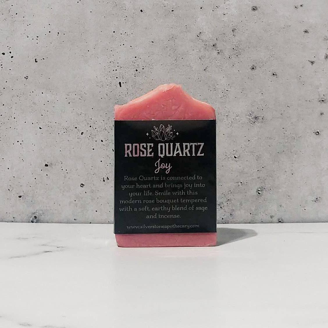 Connect with your heart and invite joy into your life with our Rose Quartz-inspired handmade soap, lovingly crafted in Oregon by Silver Stone Apothecary. This soap features a modern rose bouquet, beautifully balanced with a soft, earthy blend of sage and incense, bringing a smile to your face with every use.