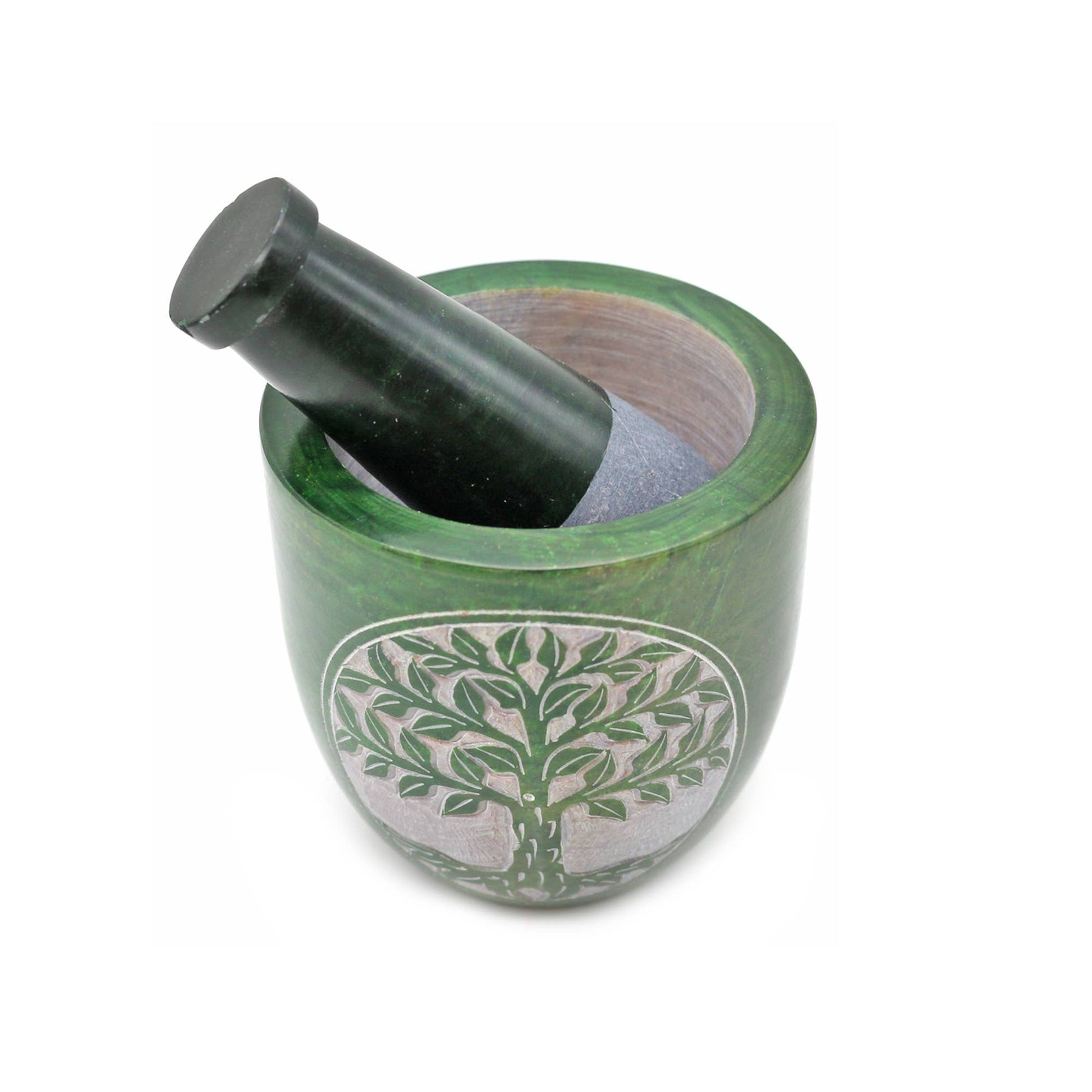 Soapstone Mortar & Pestle - Green Tree of Life (Tall)