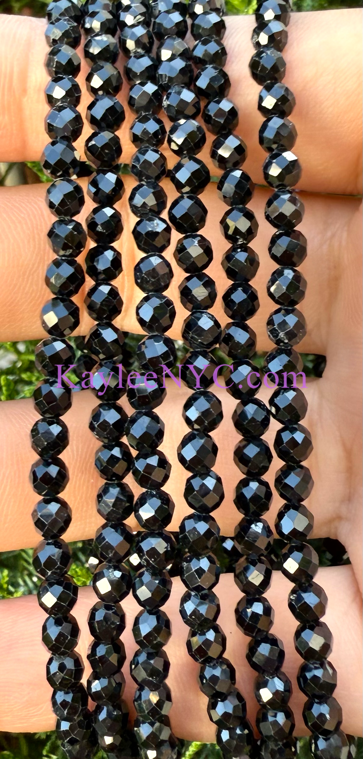 Natural Faceted Black Tourmaline 4mm 7.5”